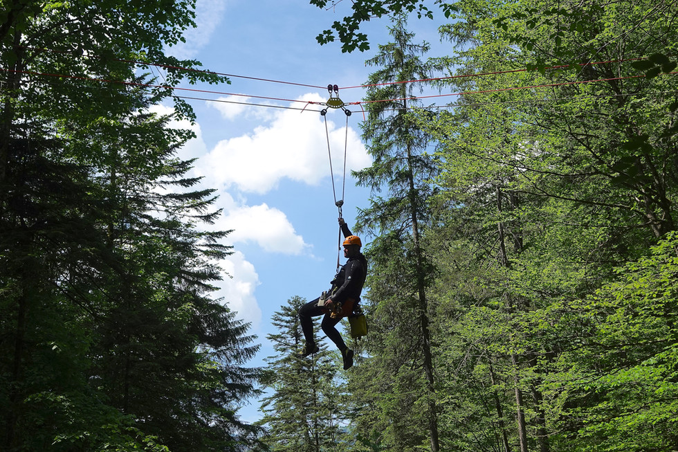 Diese Form der Bergung ermöglich es ohne wesentlichen Wasserkontakt Verunfallte aus engen Schluchten zu bergen. Die Gefahr für die Rettungskräfte kann somit wesentlich reduziert werden.