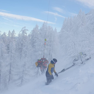 Eine Skitourengeherin hatte sich bei der Abfahrt am Gipfelhang das Knie verletzt und konnte nicht mehr selber abfahren. 2 Kameraden stiegen zu der verletzten Frau per Skidoo und mit Tourenski auf. Die Erstversorgung hatten ihre Begleiter und ein weiterer Skitourengeher übernommen.